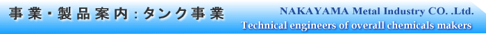 圧力容器(二圧)、反応釜、反応槽、温水槽、排水槽、配合槽、エアーホルダー、内分割タンク、危険物タンク、配合槽、製品貯槽、原料貯槽、サイクロン、大小各種ポット、その他各種